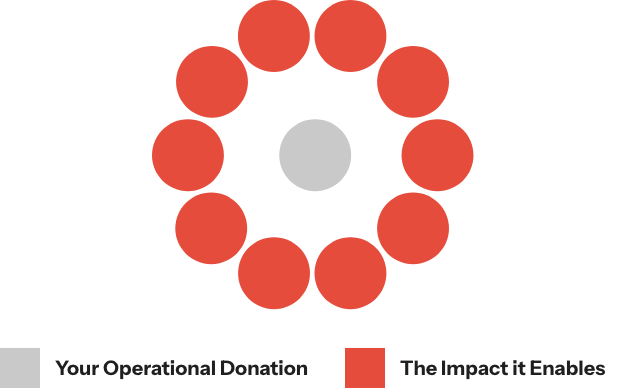 Every dollar you give to our operations unlocks $10 in donations to life-saving charities